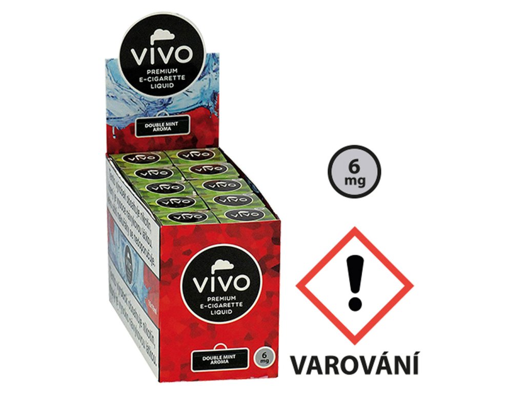 - Nikotinový liquid (6mg) 91206 E liquid VIVO Double Mint 6mg s příchutí máty.