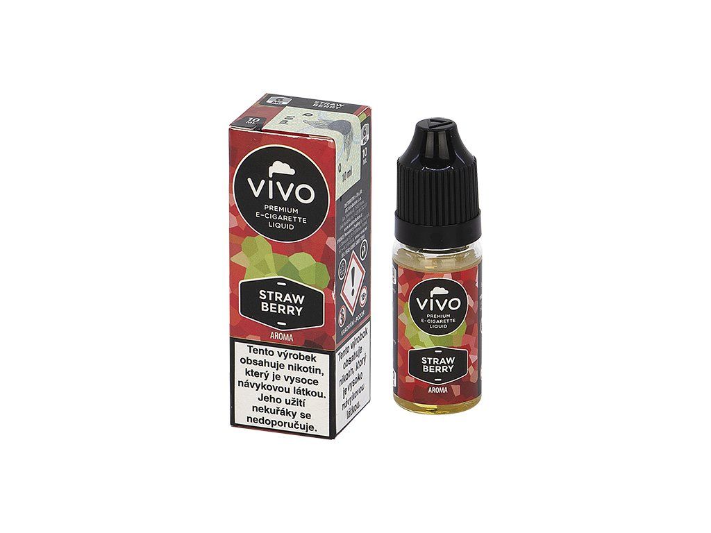- Nikotinový liquid (6mg) 91217C E liquid VIVO Strawberry Aroma 6mg/ml s jahodovou příchutí.