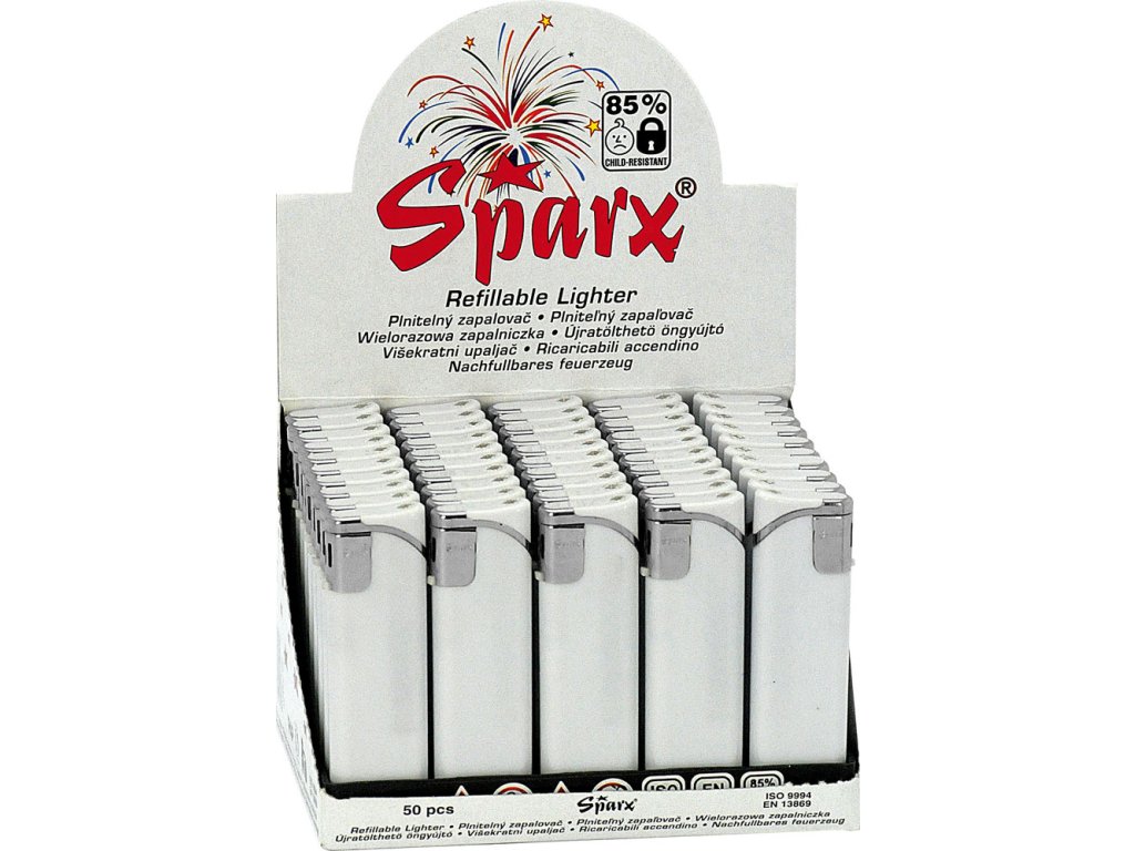 Bílý plnitelný plastový zapalovač 31061 SPARX P1826 HC White s piezo-elektrickou jiskrou vhodný pro reklamní potisk.